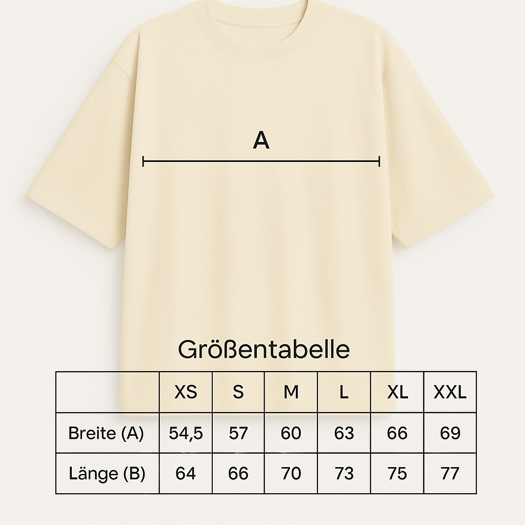 Unser Oversized T Shirt sitzt locker und bequem. Es besteht aus 100 % Bio Baumwolle und fühlt sich richtig weich an. Die überschnittenen Schultern, der schmale Ripp Ausschnitt und die sauberen Doppelstepp Nähte geben dem Shirt einen hochwertigen Look.